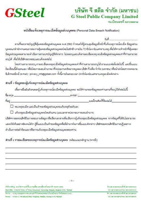 G Steel Public Company Limited ("Company") respects the right to privacy of the users of our Investor Relations website ("You"). To ensure that your personal information will be suitably protected, we would like to inform you about the data collection, record, storage, and the usage of your personal information (hereafter called "collection"), along with the deletion and destruction of your information as follows;